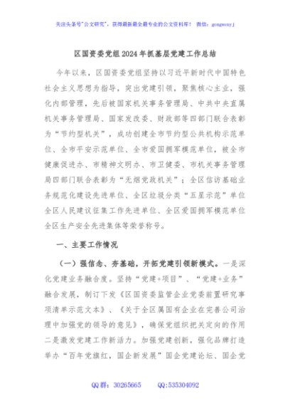 / 区国资委党组2024年抓基层党建工作总结