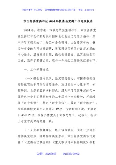 / 市国资委党委书记2024年抓基层党建工作述职报告