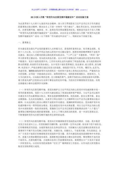 XX乡深入开展“转变作风改善发展环境建设年”活动实施方案