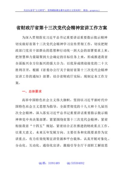 / 省财政厅省第十三次党代会精神宣讲工作方案