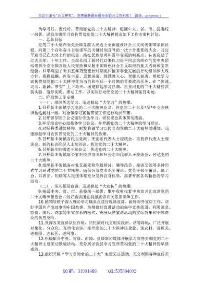 / 镇学习宣传贯彻党的二十大精神工作方案和计划