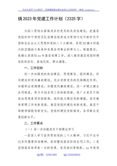 / 镇2023年党建工作计划要点