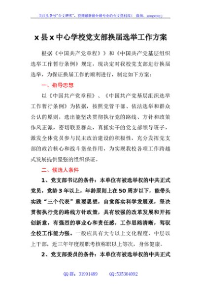 / 中心学校党支部换届选举工作方案