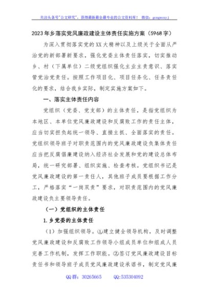 / 2023年乡落实党风廉政建设主体责任实施方案