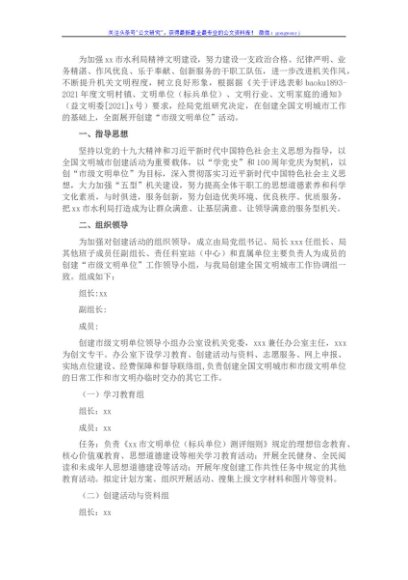 / 2021年创建全国文明城市、市级文明单位工作实施方案(局机关)