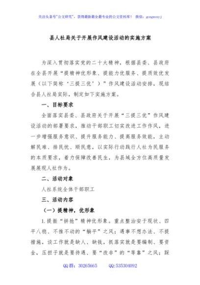 / 县人社局关于开展作风建设活动的实施方案