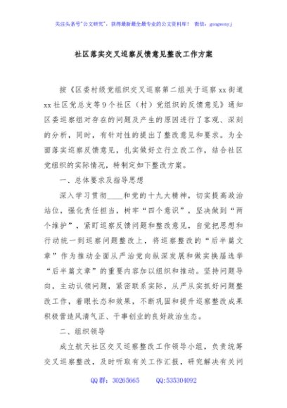 / 社区落实交叉巡察反馈意见整改工作方案