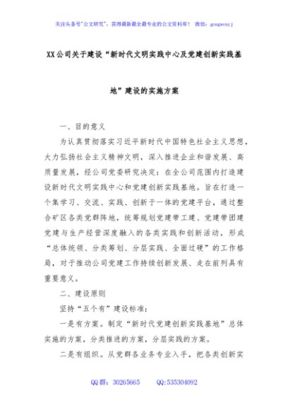 / XX公司关于建设“新时代文明实践中心及党建创新实践基地”建设的实施方案