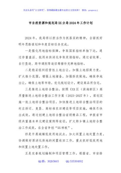 / 市自然资源和规划局XX分局2024年工作计划