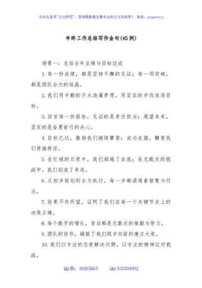 / (45例)年终工作总结写作金句