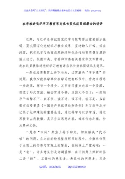/ 在市推进党纪学习教育常态化长效化动员部署会的讲话