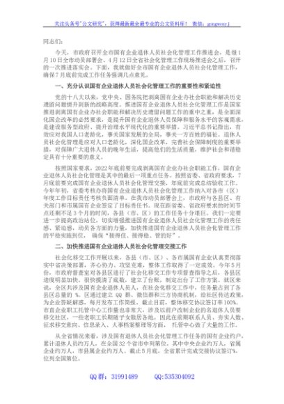 / 在2022年全市国企退休人员社会化管理工作推进会上的讲话