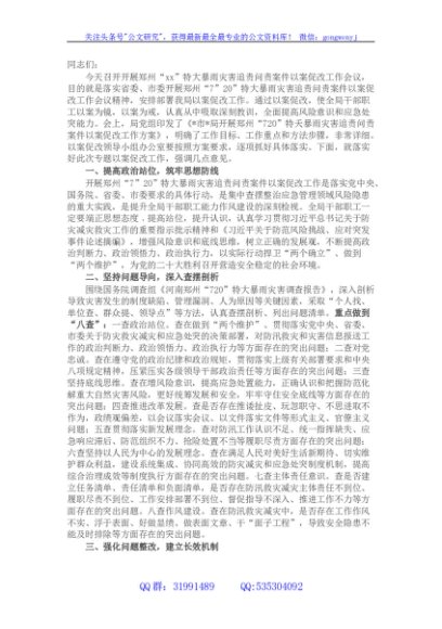 / 党组书记在郑州“7.20”特大暴雨灾害追责问责案件以案促改工作会议上的讲话