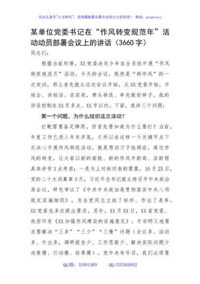 / 在“作风转变规范年”活动动员部署会议上的讲话
