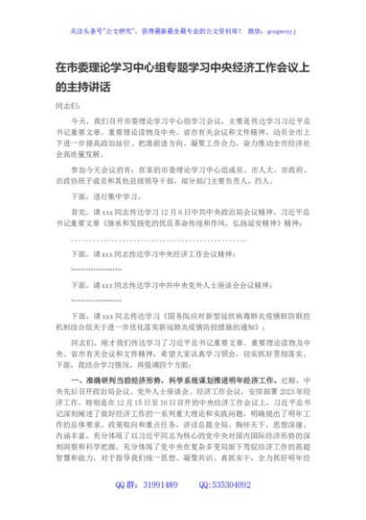 / 在市委理论学习中心组专题学习中央经济工作会议上的主持讲话