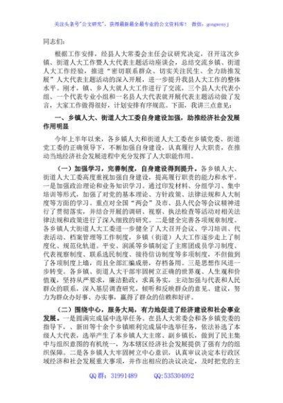 / 在乡镇、街道人大工作座谈会上的讲话
