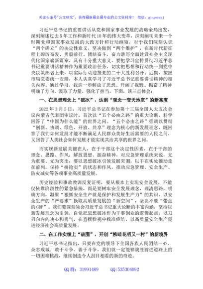 / 省部级主要领导干部专题研讨班讲话精神发言材料
