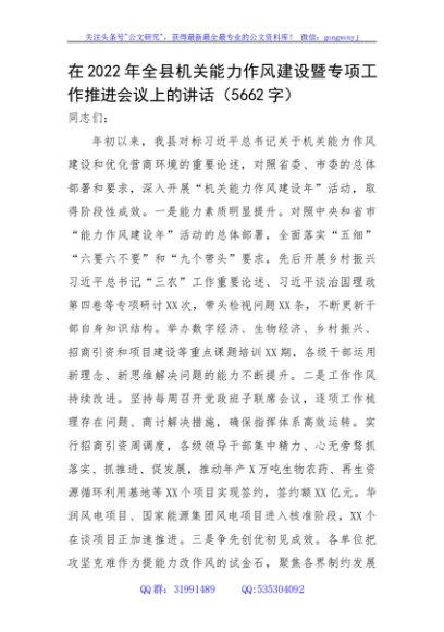 / 在2022年全县机关能力作风建设暨专项工作推进会议上的讲话