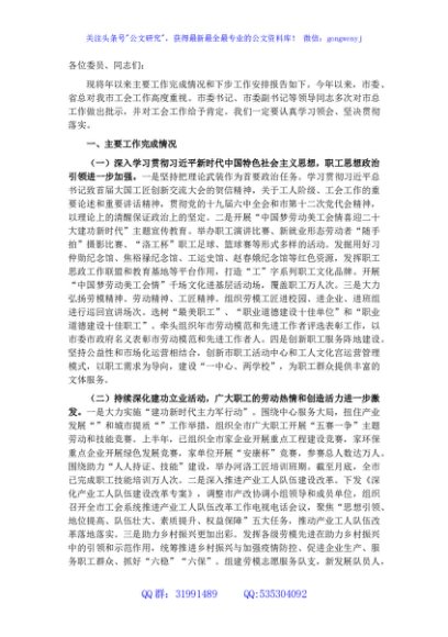团结动员广大职工务实重干 砥砺奋进 以优异成绩迎接党的二十大胜利召开——在市总工会干部大会上的讲话