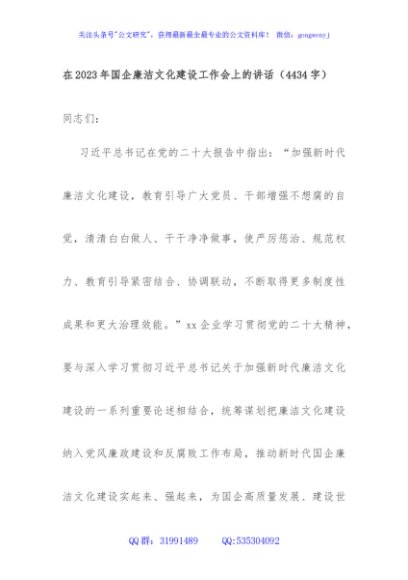 / 在2023年国企廉洁文化建设工作会上的讲话
