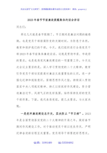 / 2023年春节节前廉政提醒集体约谈会讲话