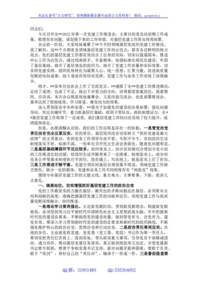 / 在全县2023年第一次党建工作推进会上的讲话