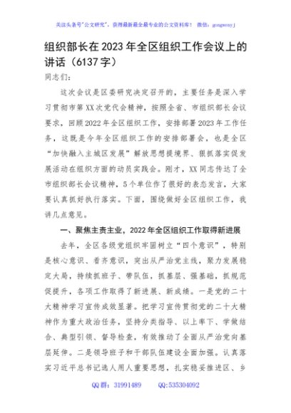 / 组织部长在2023年全区组织工作会议上的讲话