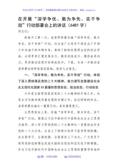 / 在开展“深学争优、敢为争先、实干争效”行动部署会上的讲话