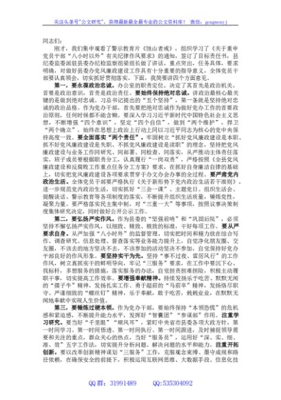 / 在县委办党风廉政建设暨警示教育会议上的讲话