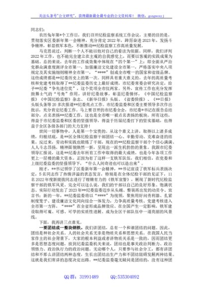 / 在2023年全区纪检监察工作高质量发展推进会上的讲话
