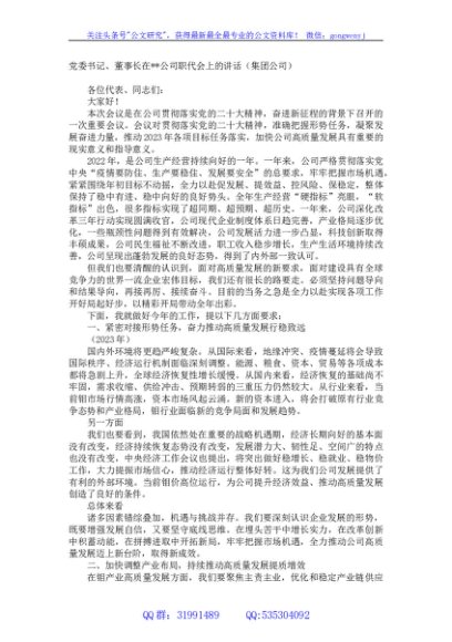 / 党委书记、董事长在公司职代会上的讲话(集团公司)