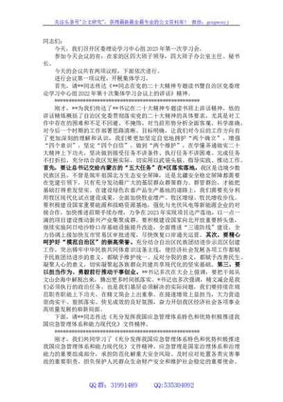 / 在区委理论学习中心组2023年度第一次学习会上的主持讲话