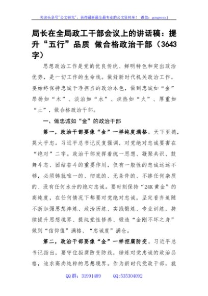 / 在全局政工干部会议上的讲话稿