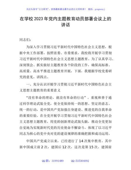 / 在学校2023年主题教育动员部署会议上的讲话6000字