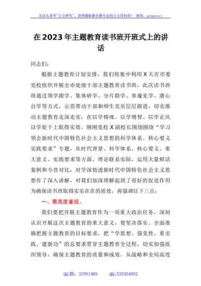 / 在2023年主题教育读书班开班式上的讲话