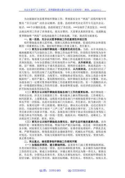 / 在全县夏季禁烧暨“两高”沿线改造提升会议上的讲话