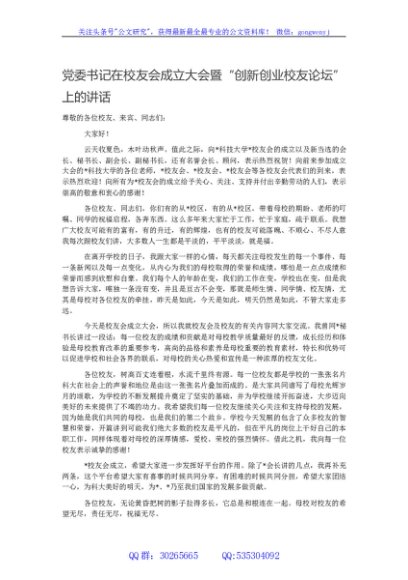 / 党委书记在校友会成立大会暨创新创业校友论坛上的讲话