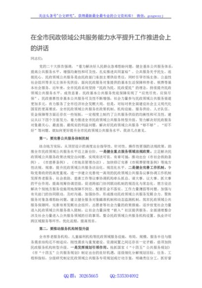 / 在全市民政领域公共服务能力水平提升工作推进会上的讲话