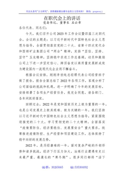 / 党委书记、董事长石云章:在职代会上的讲话