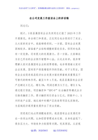 / 在公司发展工作座谈会上的讲话稿