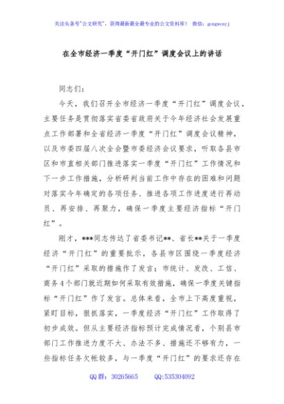 / 在全市经济一季度“开门红”调度会议上的讲话
