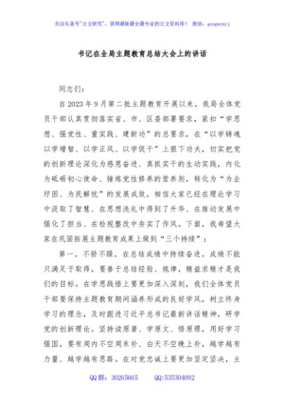 / 书记在全局主题教育总结大会上的讲话