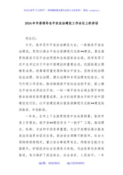 / 2024年市委领导在平安法治建设工作会议上的讲话