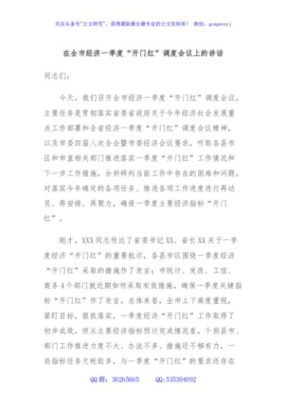 / 在全市经济一季度“开门红”调度会议上的讲话