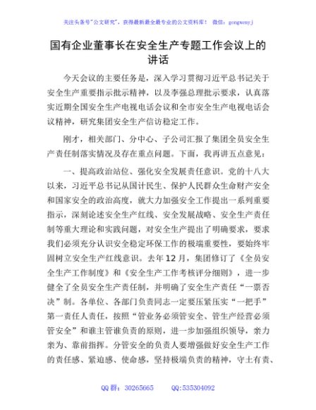 / 国企公司安全生产专题工作会议上的讲话