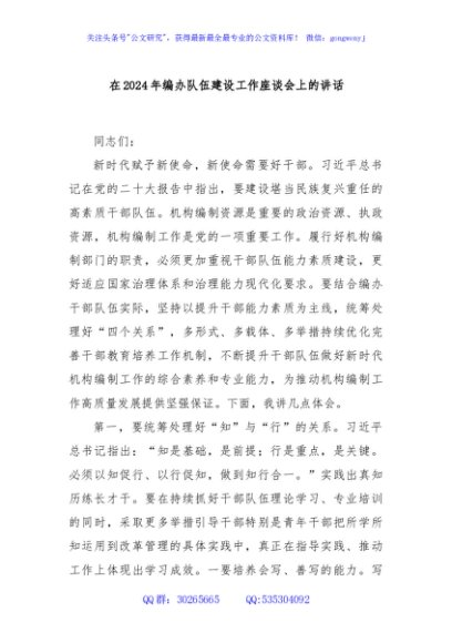 / 在2024年编办队伍建设工作座谈会上的讲话