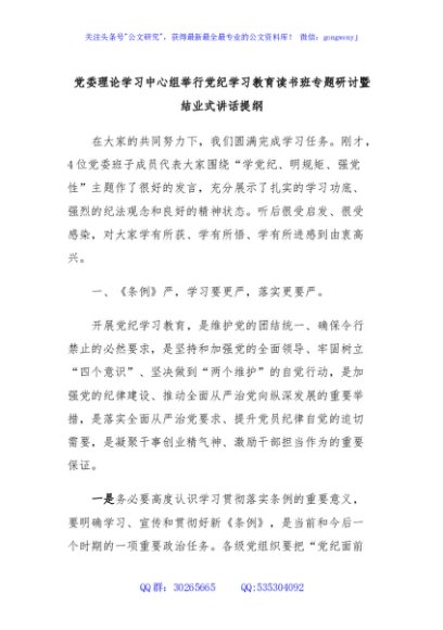 / 党委理论学习中心组举行党纪学习教育读书班专题研讨暨结业式讲话提纲