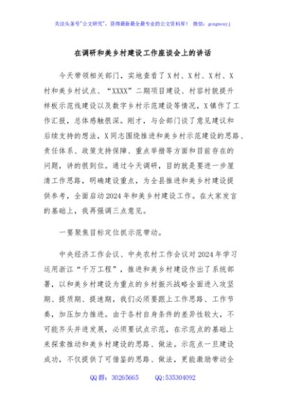 / 在调研和美乡村建设工作座谈会上的讲话