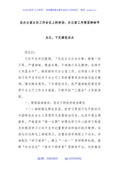 / 在办公室主任工作会议上的讲话:办公室工作要坚持细节为王,下足绣花功夫
