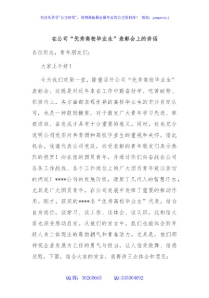 / 在公司“优秀高校毕业生”表彰会上的讲话
